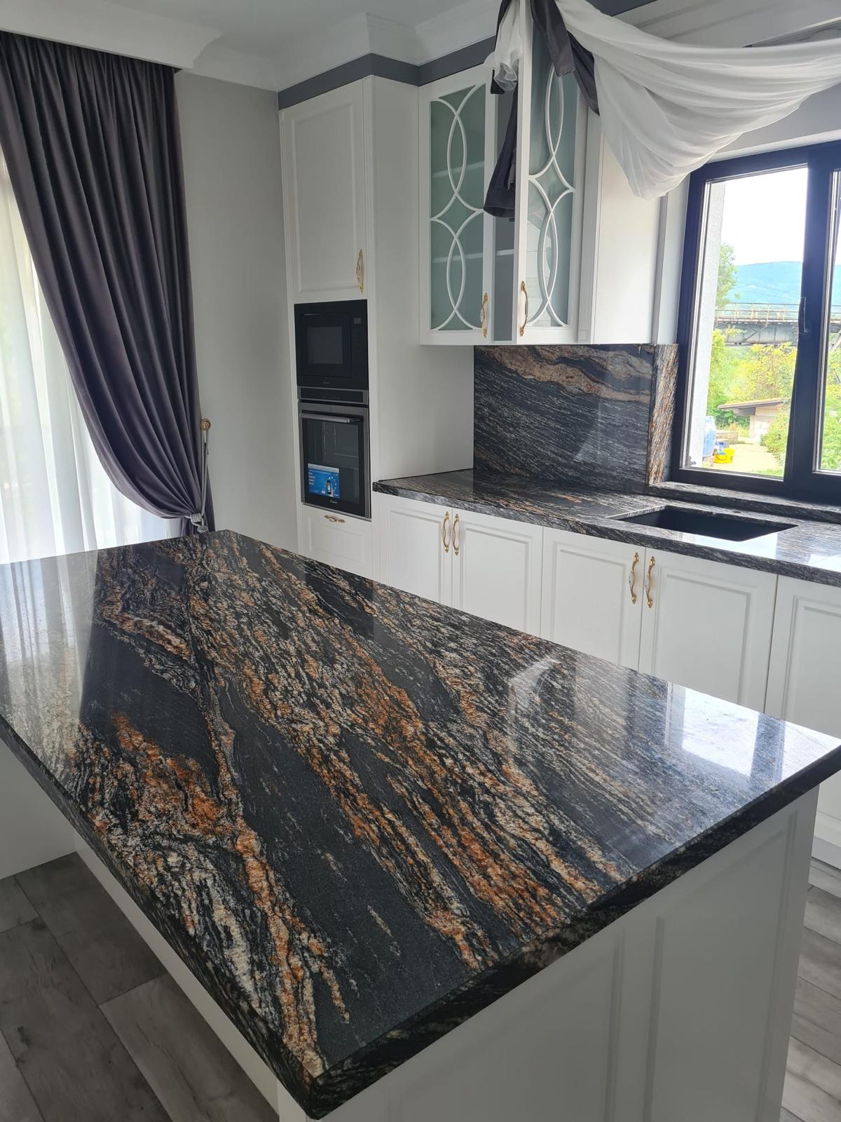 Frumusete, stil si eleganta, experienta acumulata in timp isi spune cuvantul in executia unui blat de bucatarie sau baie chiar si in cele mai dificile situatii. Firma noastra produce o gama variata de modele de blaturi de bucatarie si baie :
